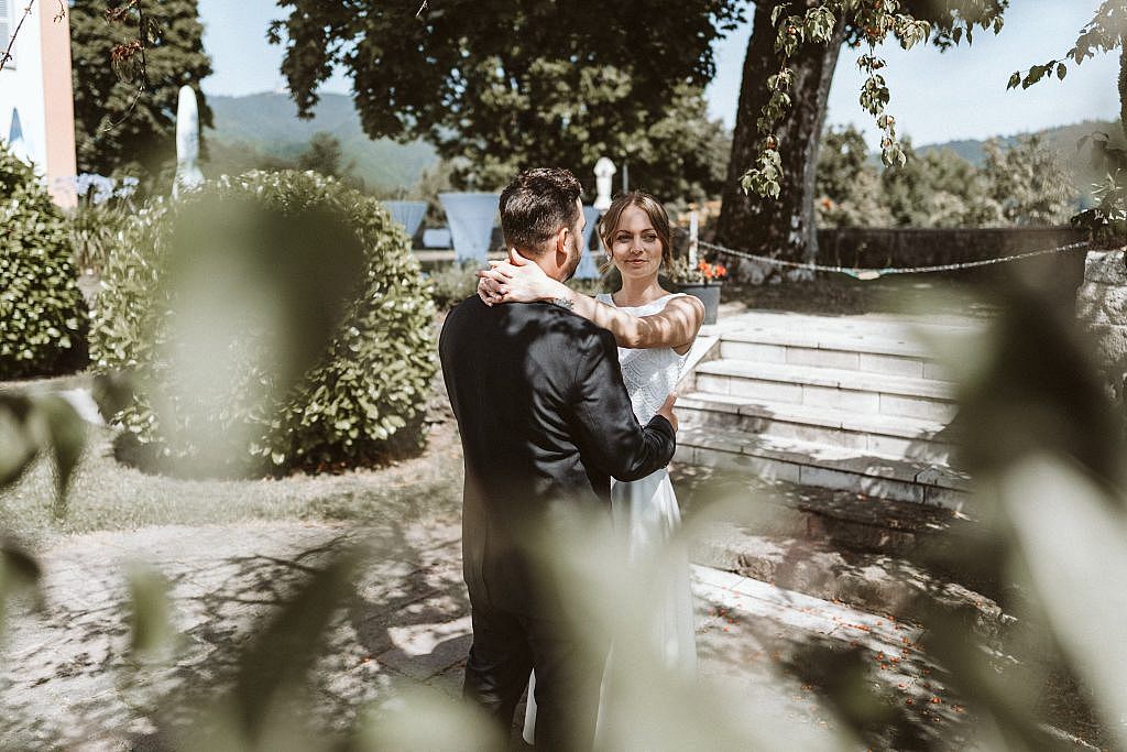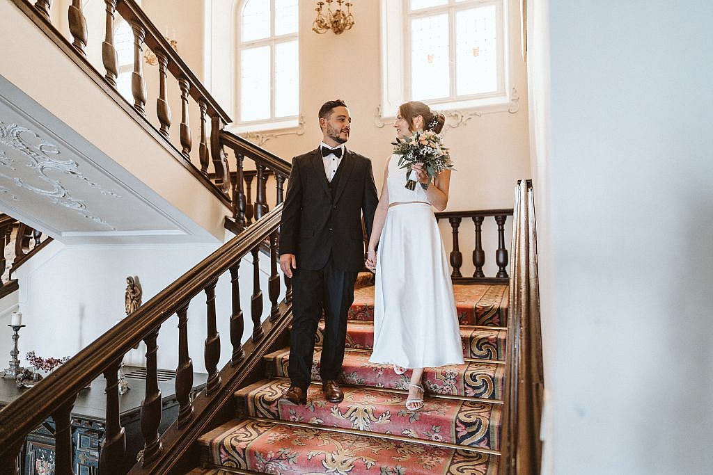 „Wir haben uns ganz bewusst dazu entschieden, den Tag mit dem Brautpaarshooting zu beginnen. Es ist ein kleiner Geheimtipp, den ich Paaren gerne ans Herz lege: Diese Zeit, bevor die ersten Gäste eintreffen und das große Fest beginnt, gehört ganz allein ihnen.