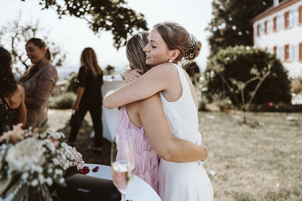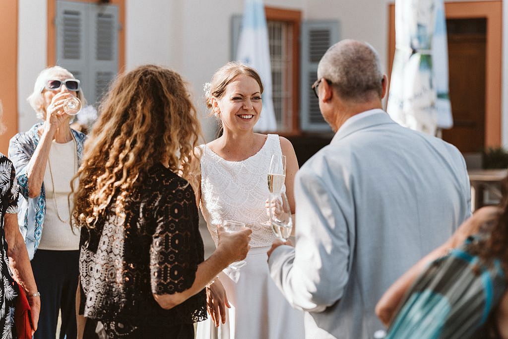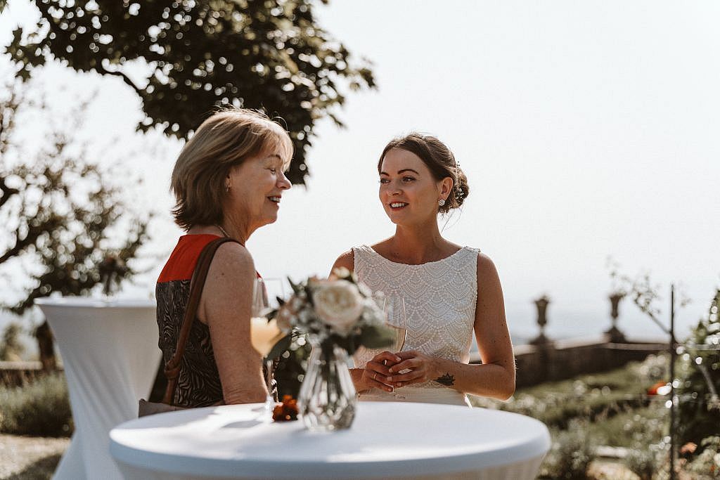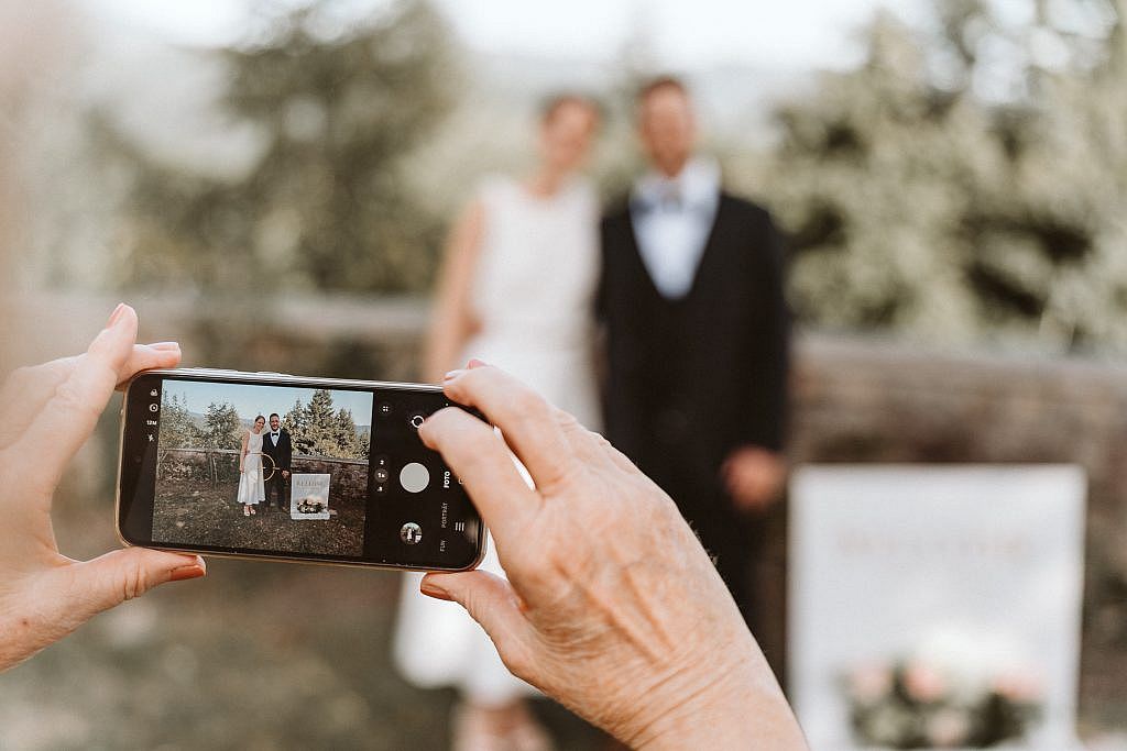 Der große Vorteil? Als die Zeremonie später startete und die Gratulationen folgten, mussten wir die Gesellschaft nicht mehr für lange Zeit verlassen. So blieb nach der emotionalen Freien Trauung mehr Raum für das, was wirklich zählt: Zeit mit den Lieblingsmenschen verbringen, gemeinsam lachen und jeden Augenblick mit den Gästen in vollen Zügen genießen.“