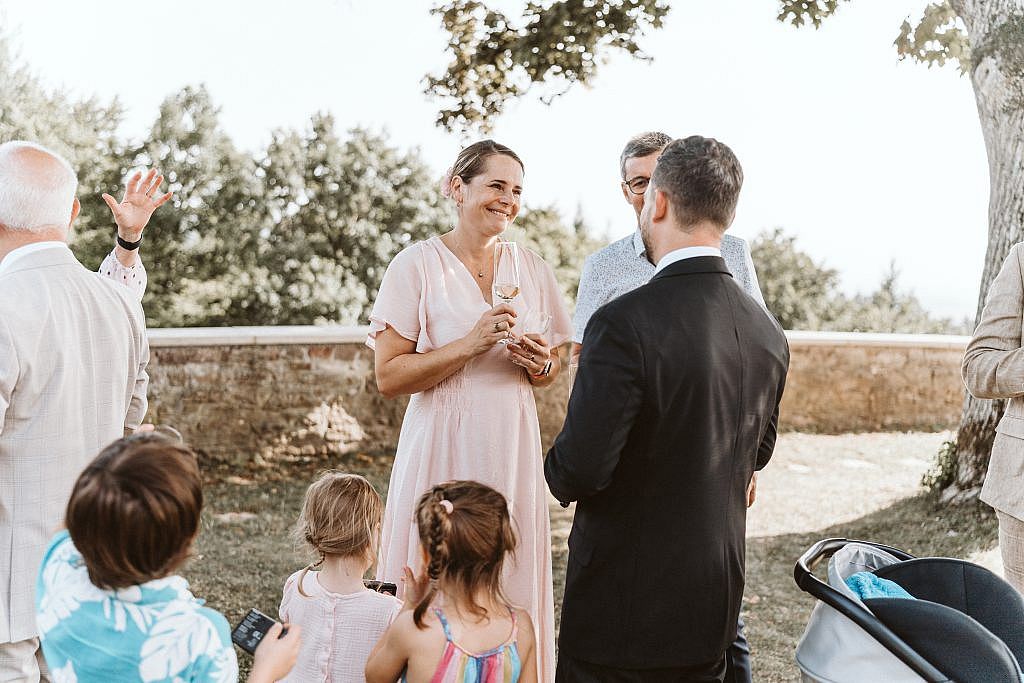„Der Apéro im Schlossgarten war auch der perfekte Rahmen, um die vielen Menschen, die aus aller Welt angereist waren, in gemeinsamen Bildern festzuhalten. Mir ist es wichtig, dass auch die Gruppenfotos nicht wie ein starrer Pflichttermin wirken, sondern als Teil des feierlichen Miteinanders.